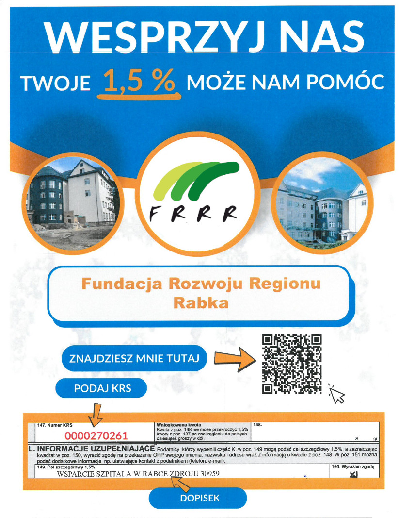 zachęcamy do przekazania 1,5% podatku na remont rabczańskiego Szpitala: